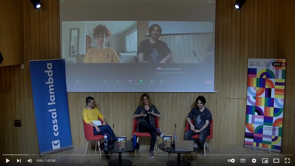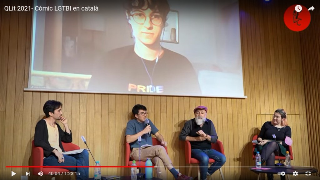 Taula rodona sobre còmic LGBTIQ+ en català, amb Ian Bermúdez, Març Llinàs, Sebas Martín i Lucía de Palau com a convidats amb Marina Vidal de moderadora dins la quarta edició del festival de literatura queer de l’AELC (QLit).